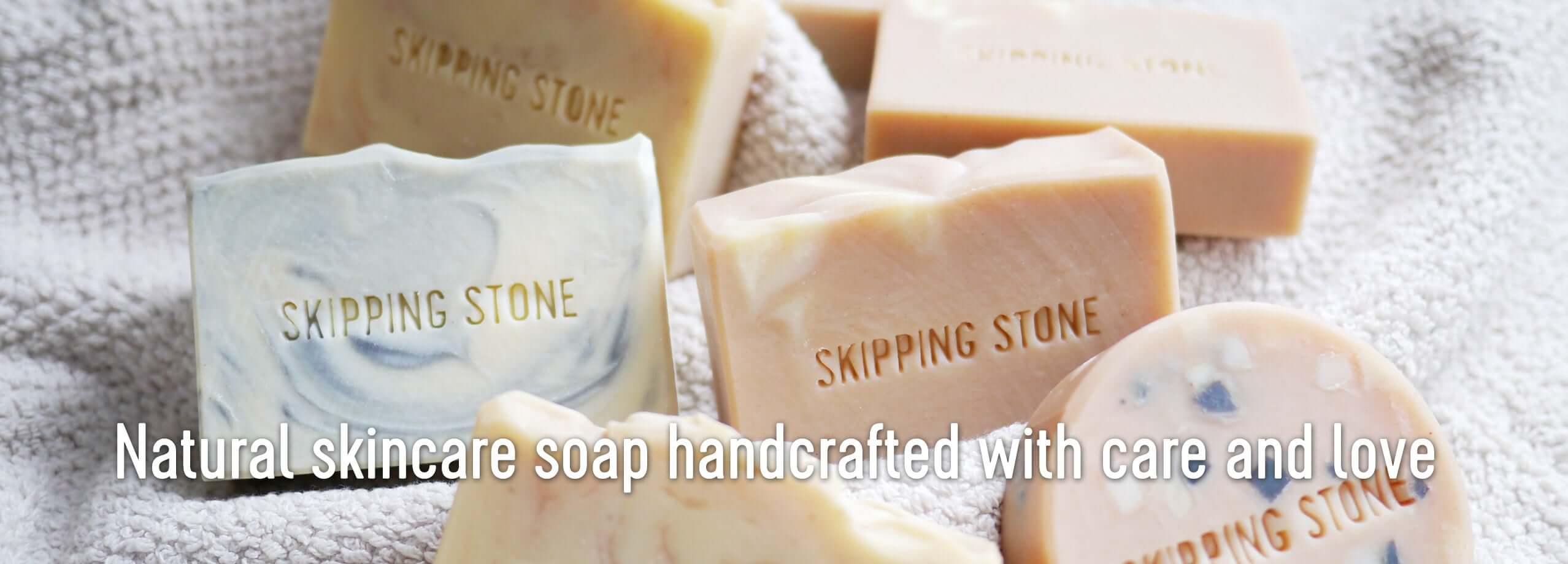 At Skipping Stone Soap we meticulously handcraft all-natural cold-process soaps and solid shampoo bars using the finest quality, plant and earth-based, organic, and locally sourced ingredients. All of our soaps are gentle on the skin, are unscented or lightly scented with essential oils, and clean and nourish well, yet very gentle on the environment.